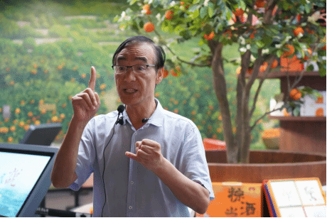 △王海群先生讲解秭归脐橙图 杨雯迪摄