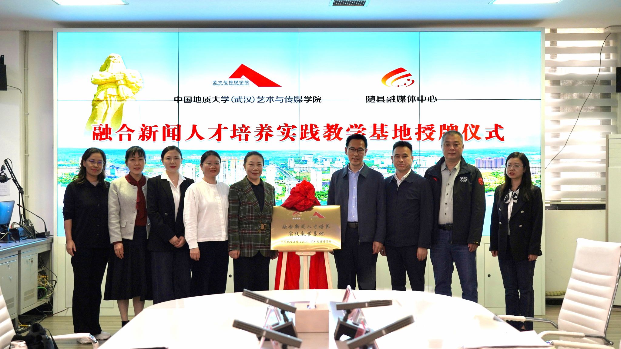 (通讯员 李伟娜)2025年10月15日,艺术与传媒学院与随县融媒体中心实践育人基地签约暨授牌仪式在随县成功举行。学院党委书记冷再心、党委副书记边建华,随县县委常委、宣传部部长苏俊、县政府党组成员龚斌等出席活动。仪式由随县融媒体中心副主任叶小闯主持。