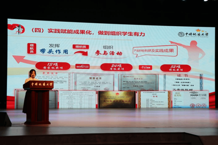 10月29日,中国地质大学(武汉)2025年学生党支部风采大赛(决赛)在南望山校区弘毅堂举行。经过复赛选拔,全校共10个党支部入围决赛。经过支部介绍与支部风采展示两大环节的激烈角逐,我院新闻传播学学生第一党支部最终斩获大赛二等奖,党委副书记边建华老师荣获“优秀指导老师”荣誉称号。