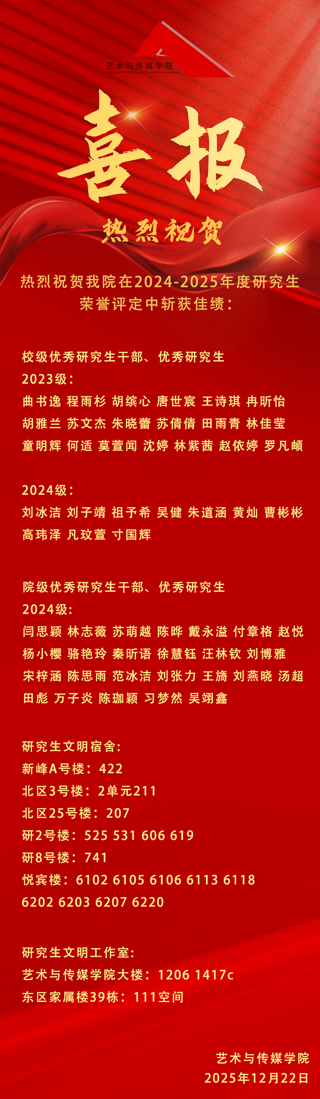 喜报 | 热烈祝贺艺术与传媒学院在2024-2025年度研究生荣誉评定中斩获佳绩!