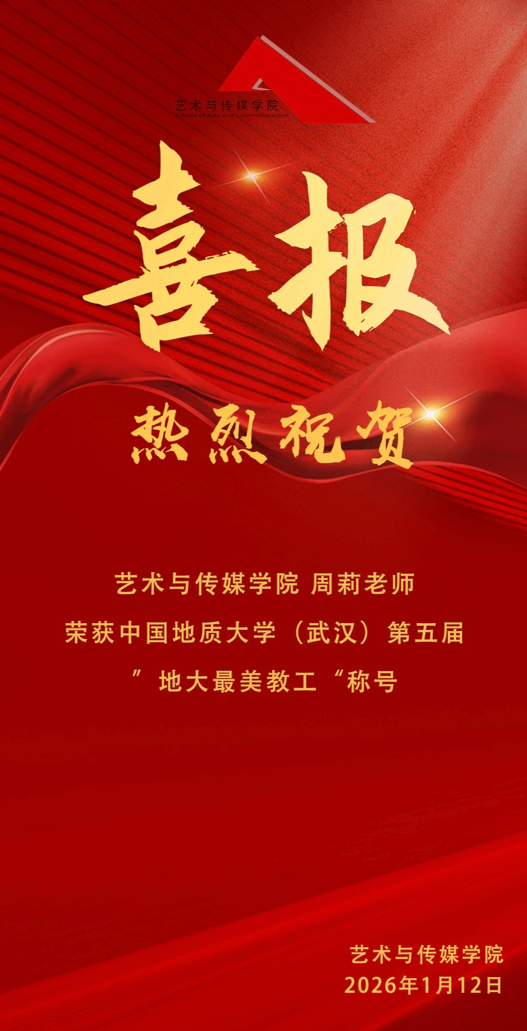 喜报 | 热烈祝贺艺术与传媒学院周莉老师荣获中国地质大学(武汉)第五届“地大最美教工”称号!