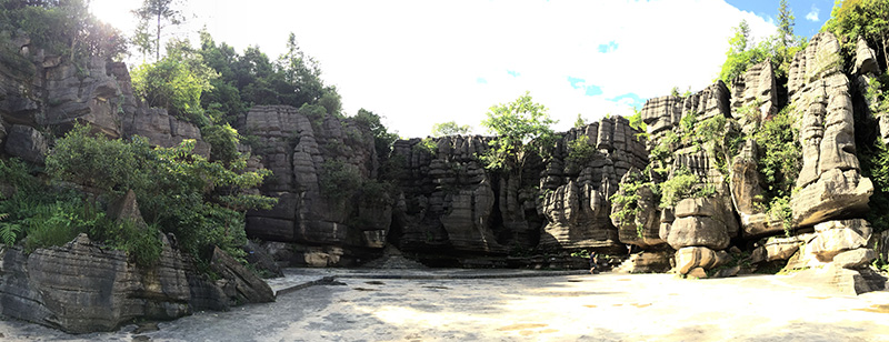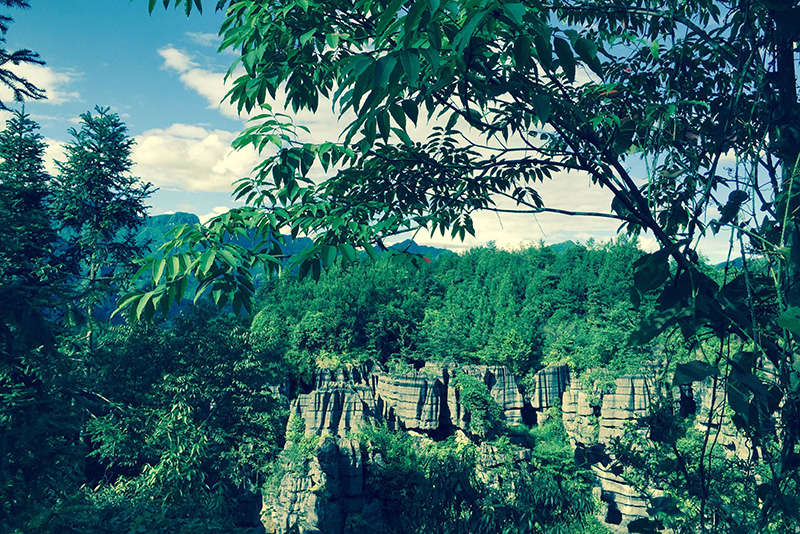 大二下学期的暑假,我们来到了恩施进行为期一周的暑期实习。七月四日,实习第一站早上6:40我们在隧道口集合,怀着兴奋激动的心情坐上了开往火车站的大巴车。4个小时的动车,两个小时的盘山颠簸的公路,我们首先来到了梭布垭石林进行参观。