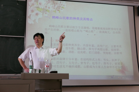 早上给我们上第一节课的是民族歌舞团的团长雷鸣老师,值得一提的是我们昨天所看的黄四姐歌舞剧他是其中的重要演员之一。雷鸣老师非常亲和谦逊,整个课堂给我们的感觉不像是在课堂上,而是一个交流会,老师很耐心的回答解答同学们的问题,让我们受益匪浅。休息片刻后,我们迎来了第二节课的刘开封老师,著名歌唱家也是著名作曲家,老师围绕着原生态民歌的保护和传承为我们展开讲座,在课中,刘老师时不时给我们唱几句自己的作品,以情动人,不仅如此,刘老师言语风趣幽默,金句连连,令同学们拍手称赞!