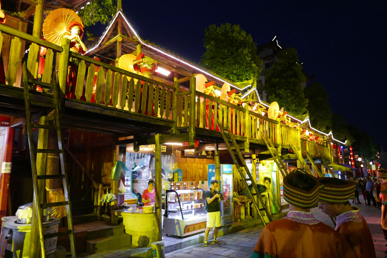 在接下来的自由活动时间,同学们结伴来到了小吃街,恩施果然不但景美人热情,小吃也非常别具特色风味。随后到晚饭时间时,我们来到了一个很有特色的餐厅名叫巴人堂,在这里可以喝到极具特色的摔碗酒,在享受晚餐的同时,餐厅也安排了具有特色的歌舞表演,让人心情愉悦。晚饭后一边闲逛一边感受女儿城的风土人情,热情的歌舞,别具特色的吊脚楼,还有喜庆的抬花轿表演让我们洋溢在红火热情的女儿城里。