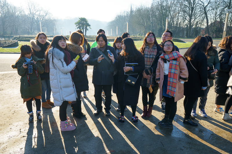早9点55分,访学团穿过布鲁塞尔世博中心,到达原子塔。原子塔位于布鲁塞尔市西北郊的海瑟尔高地,是布鲁塞尔十大名胜之一。它造型独特,精妙绝伦,其大胆的构思赢得了访学团成员的一致好评。对此,马林老师表示:“原子塔是比利时为纪念1958年世界博览会而设计的,其设计构思是将金属铁分子的模型放大1650亿倍,人们曾评价它是‘世界上最令人感到震惊的建筑’,同时,它也有着‘比利时的埃菲尔’的美称。”语毕,马林老师便邀访学团全体成员在此合影留念。