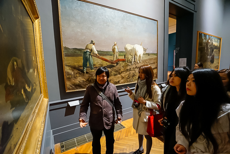 下午,马老师带领访学团直奔罗马国家现代美术馆。马老师介绍到,罗马国家现代美术馆是意大利收藏现代美术作品作丰富的美术馆,并带领访学团逐一参观了19~20世纪新古典主义、马基亚伊奥利画派、未来主义、形而上画派、抽象主义等不同风格流派的绘画作品,并重点分析不同时期大师作品的特色。
