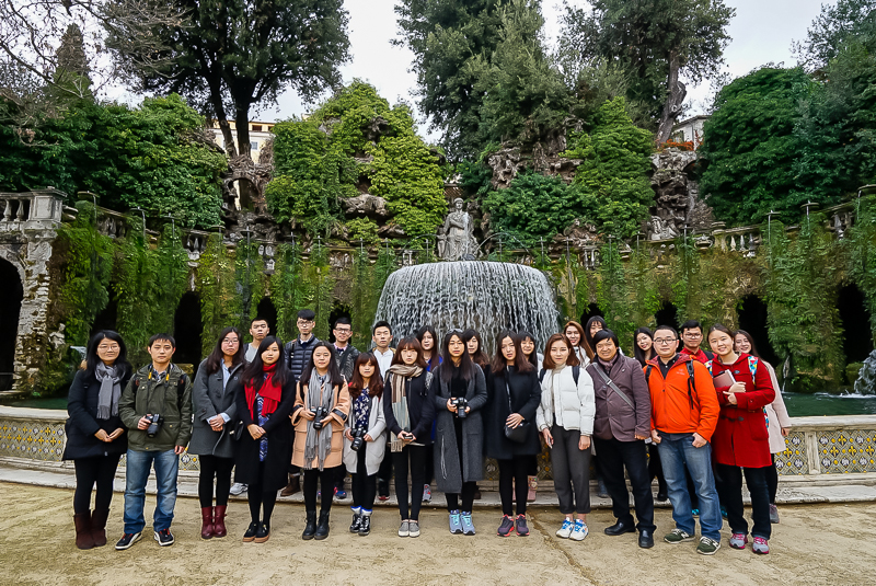 设计学科本科生访学团在马林老师的带领下,前往罗马东郊的埃斯特庄园(Villa d’Este)。