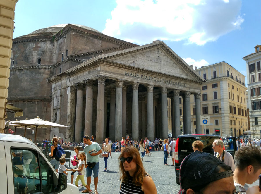 9月7号上午,领队马林老师带领意大利写生小组到罗马美术学院附近的画材店买同学们参展用的装置材料。随后就到了罗马西班牙广场等景点观看当年经典电影《罗马假日》的部分拍摄场地和特莱维喷泉等建筑,并参观了建筑圣地“万神殿”,万神殿是至今完整保存的唯一一座罗马帝国时期的建筑,是奥古斯都时期的经典建筑。文艺复兴时期艺术天才拉斐尔的墓就安放在这里。