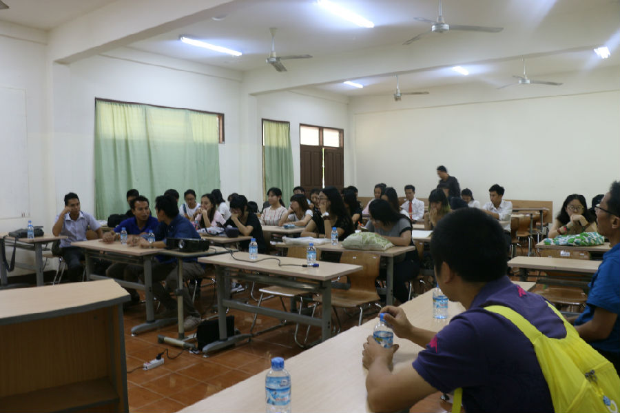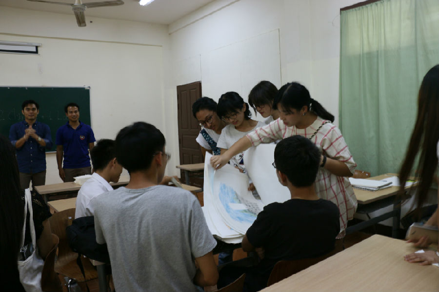 九月九日,老挝写生组受老挝苏发努冯大学建筑学院邀请前往该校交流,交流活动主要包括:首先,写生组教师为建筑学院师生进行专业讲座,以写生组同学作品为例介绍杏色 艺术教育的教学思路和认识方法,其次,建筑学院教师陪同写生组师生参观学院教学设施及环境,最后建筑学院同学与写生组同学分组交流。