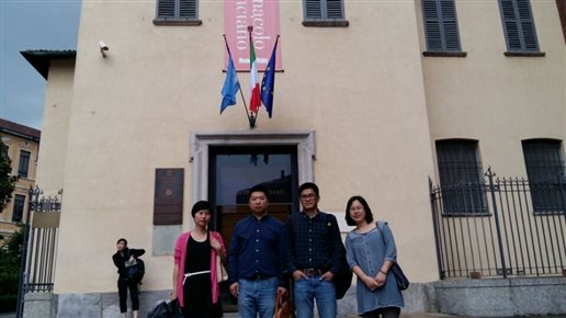 当地时间6月16日上午,当代艺术系教师来到米兰市内的圣母玛利亚感恩教堂,文艺复兴时期的艺术巨匠达芬奇的名作《最后的晚餐》就在这座教堂内修道院的墙上。精确的透视使画面与整个墙面融为一体,空间感极强。教师们第一次在现场看到真迹,极具震撼力。画作几百年来进行了多次修复,非常脆弱,禁止照相,且分时限时参观。走廊墙上挂有复制品,供参观者多次观摩。此外,这座教堂建筑本身也很有特色,被列为世界文化遗产。由文艺复兴时期著名的建筑大师布拉曼特设计,其旋转渐进式的外观极其壮美。