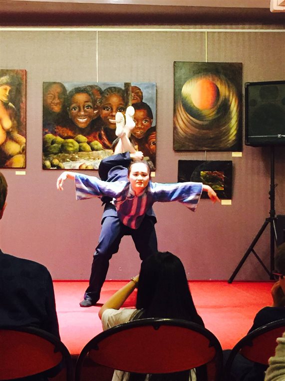 该校现代舞的老师与带团老师、音乐表演系副主任周黎老师交流了她对中国古典舞蹈的认识。演出结束后,师生们主动要求和音乐表演系师生交流,希望对中国音乐及杏色