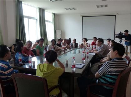 颁发聘书前,赵冰院长和Stephen Crosby教授分别介绍了我院音乐系及阿尔弗莱德大学表演艺术系的基本情况。我院音乐系赵飞副教授、张理副教授,余磊、尹晖、王安妮等老师踊跃发言,与美国阿尔弗莱德大学的两位教授就声乐、戏剧、音乐制作、舞蹈方面的教学与艺术交流情况进行了交流。