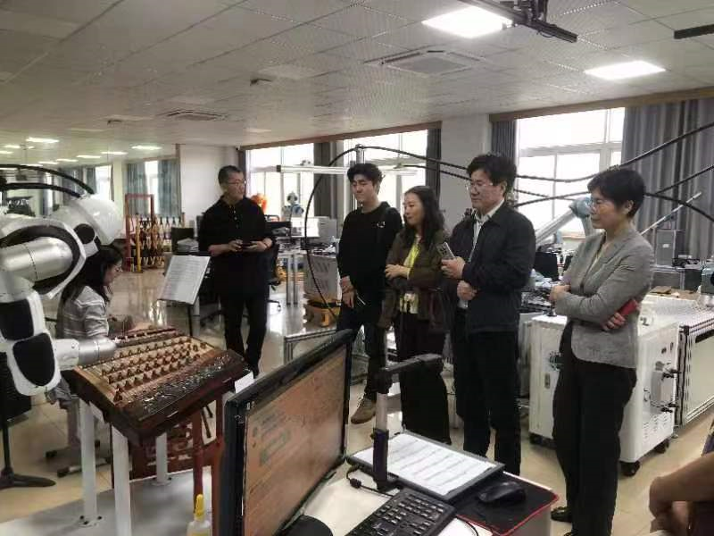 音乐科技团队自主研发的海百合音乐机器人,海百合和音乐系学生交互演奏《茉莉花》进行了欢迎。音乐科技团队负责人周莉副教授对海百合的智能识谱、智能作曲等功能进行了介绍,庹祖海对我院艺术与科技学科交叉取得的成果表示认可,期待艺科所和地大进一步深化合作,希望相关科研成果能为演艺行业转型升级提供支持,推动相关成果的转化和推广应用。
