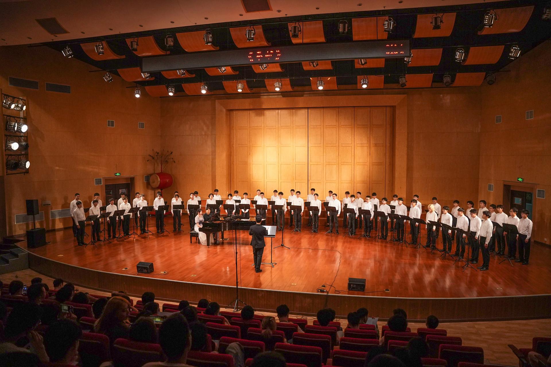 同学们饱含激情地演唱了12首风格各异的歌曲,表达对艺术的热爱与追求,展现出 杏色