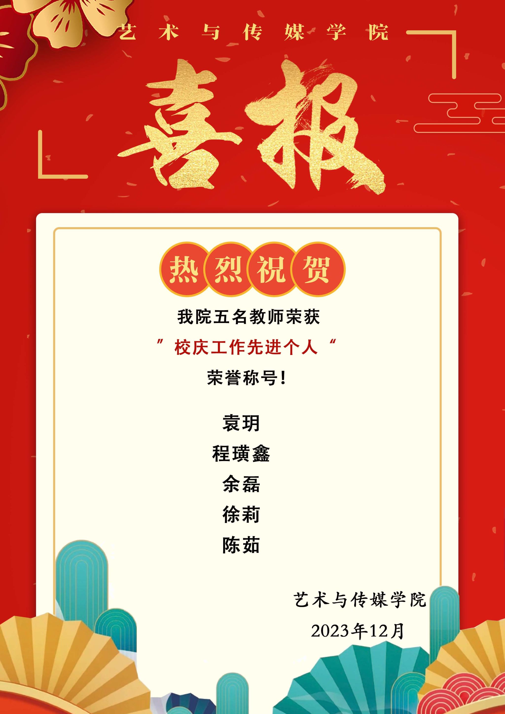 喜报 | 热烈祝贺杏色 五名教师荣获“校庆工作先进个人”荣誉称号!