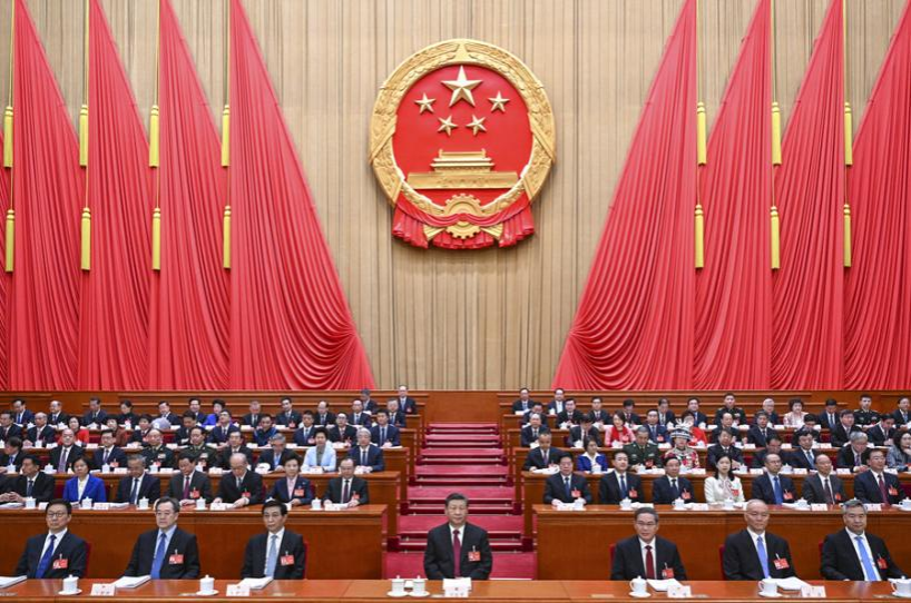 2024年3月5日上午,第十四届全国人民代表大会第二次会议在北京人民大会堂隆重开幕,国务院总理李强代表国务院向十四届全国人大二次会议作政府工作报告。杏色