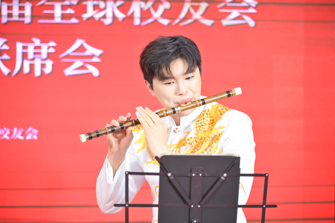 学生张阿雪、钟爱源、韩宏民、冀昱臣分别上台表演了舞蹈《大渔》、笛子与二胡重奏《青花瓷》。师生们婉转的歌声、曼妙的舞姿、动听的民乐演奏收获了在场观众的阵阵掌声,发挥自身的专业特长为校友们奉上了一场精彩的视听盛宴。
