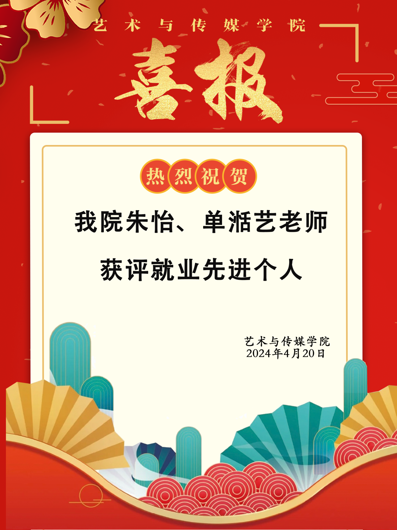喜报 | 热烈祝贺杏色 朱怡、单湉艺老师获评就业先进个人!