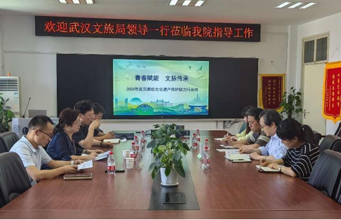 参会人员,并对他们的到来表示热烈的欢迎。接着,文旅局文物保护与考古处处长李丹介绍了商请协办2024年武汉市文化与自然遗产日活动暨第一届武汉高校文化遗产保护助力行活动的相关事宜。本次活动主题是“青春赋能 文脉传承”,活动时间是2024年6月至11月,6月7日在武汉市博物馆召开启动仪式,活动主要分为“青年行”“青年游”“青年拍”“青年说”及活动成果汇报几部分。同时大家对学院的发展及后期的合作也作了深入交流。