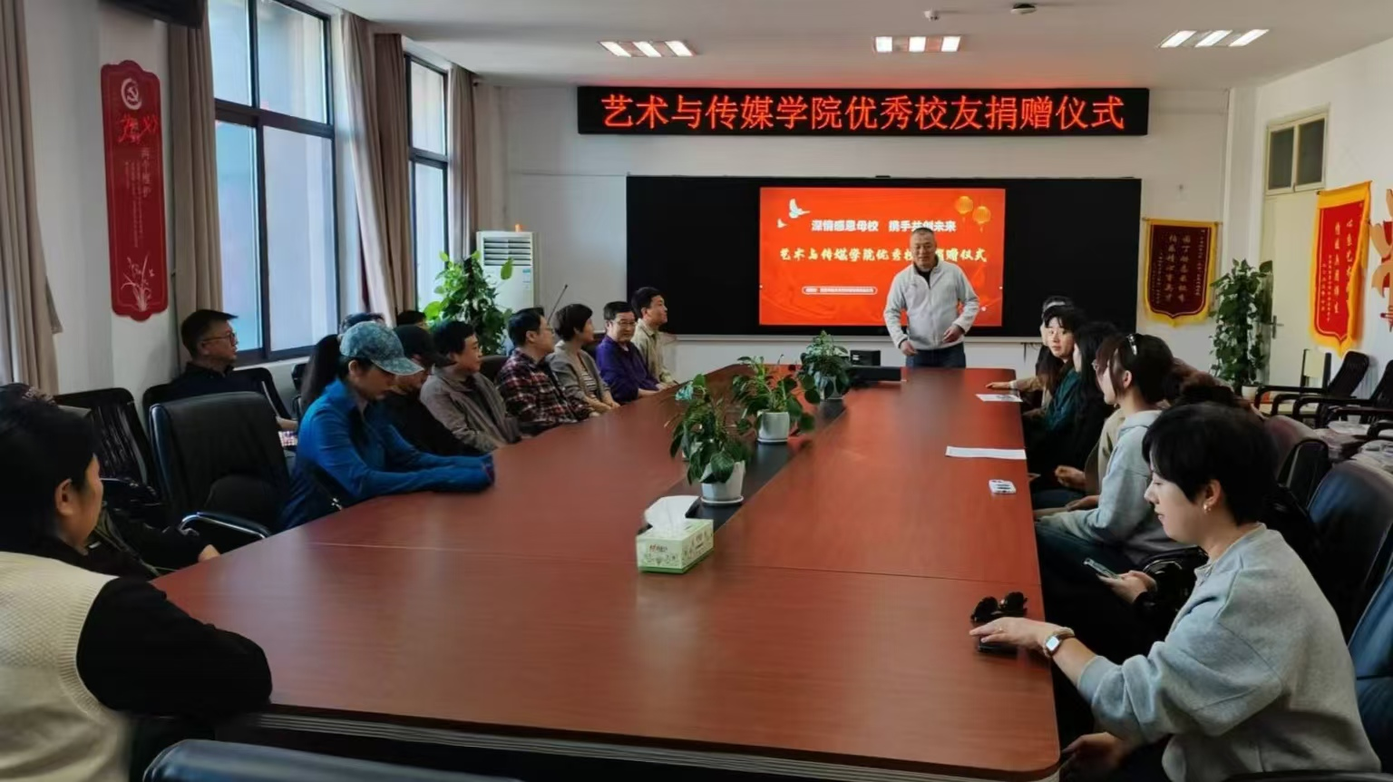在1209会议室举行优秀校友捐赠仪式。杏色