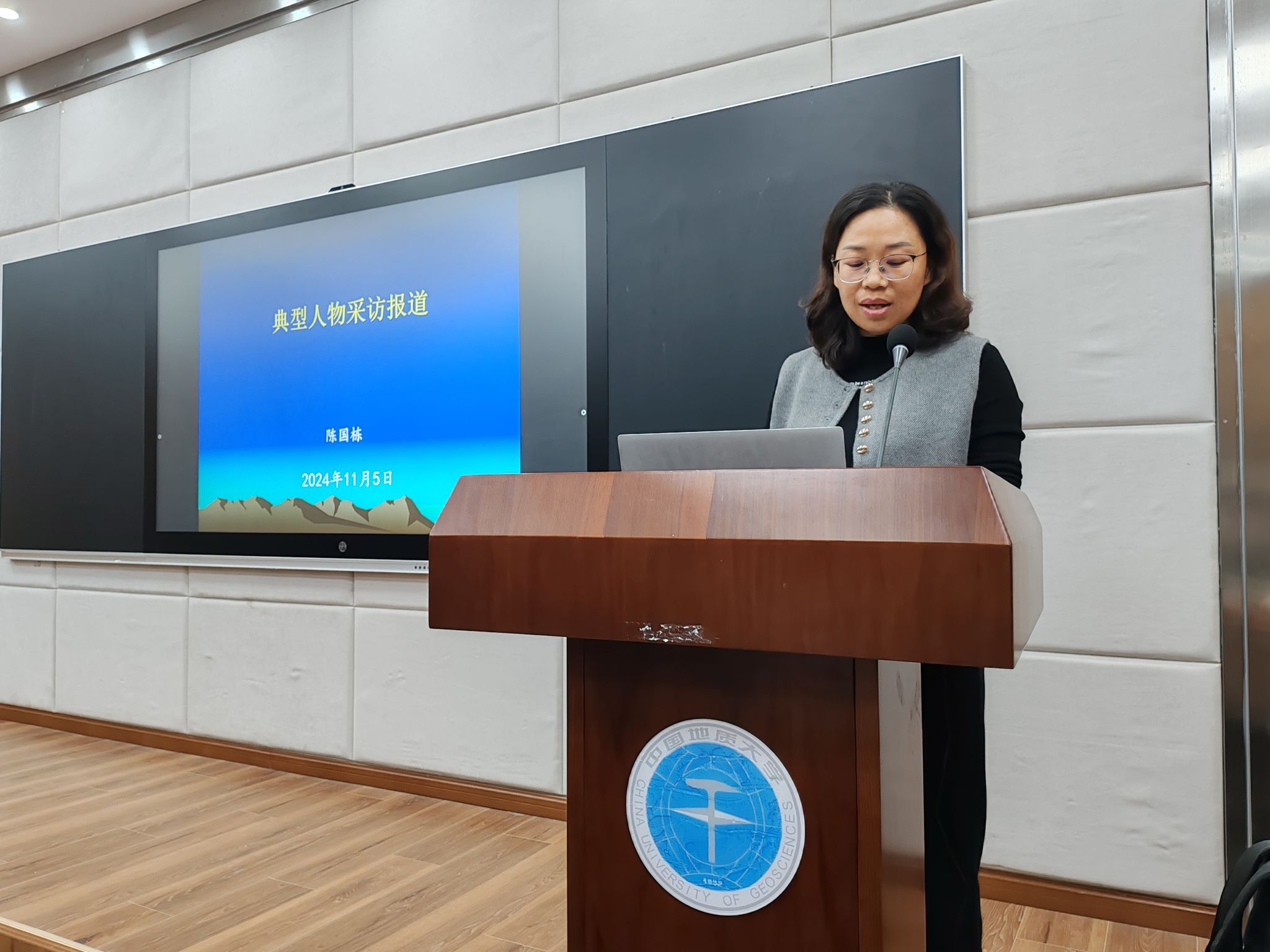 (文稿:蔡柯梵,摄影:杨淞喆)11月5日晚,中国自然资源作家协会主席陈国栋研究员在艺术与传媒大楼1104报告厅,举办题为《典型人物采访报道》的专题讲座。本次讲座由党委宣传部和杏色