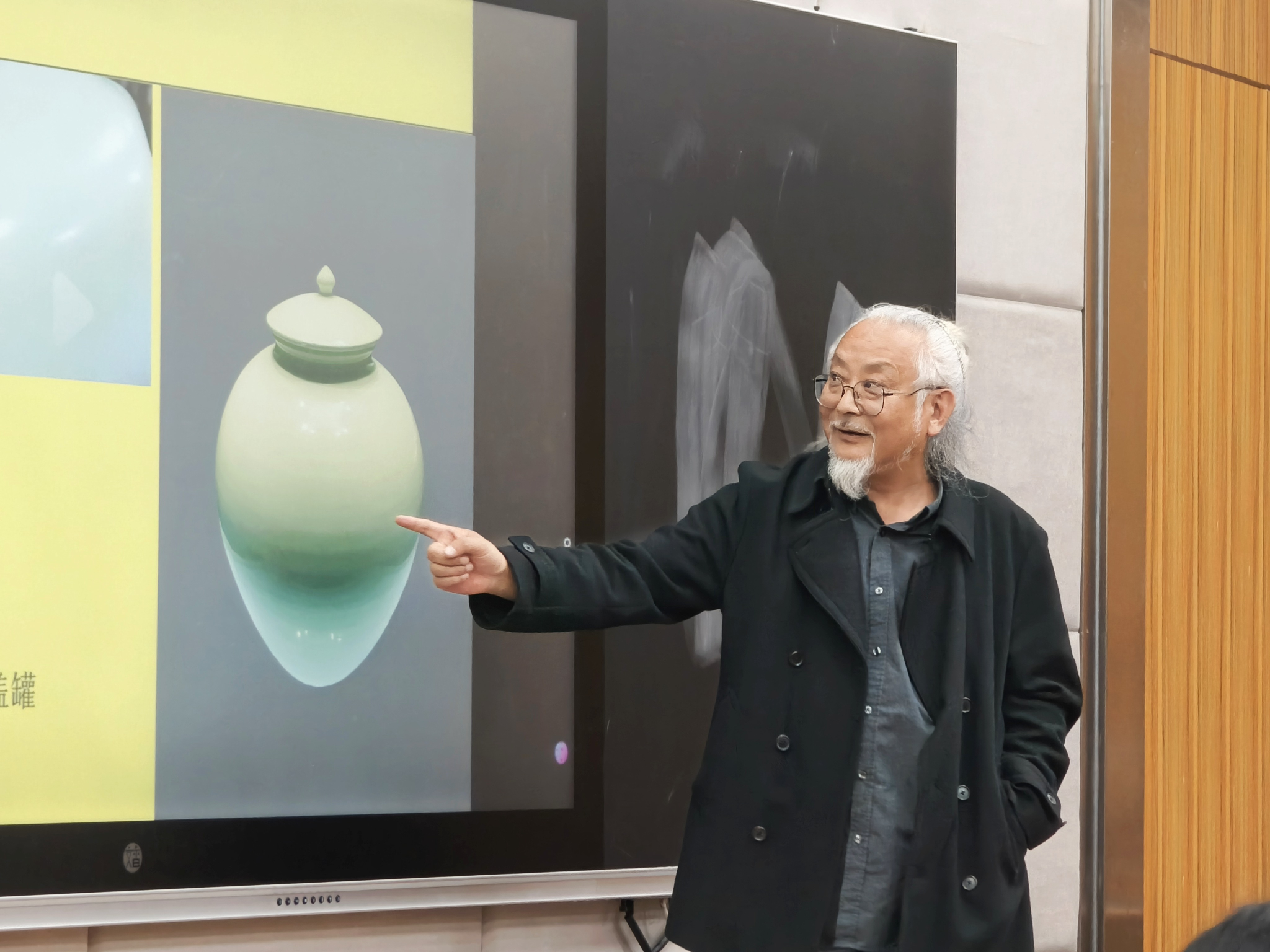 2024年11月6日晚7点,艺术与传媒系列讲座在艺媒楼1104举行,主题为“品鉴陶瓷白釉演变之意趣”。本次讲座中,王梦林教授向我们详细展示和介绍了瓷的白釉在历史中的演变与发展,带领我们一起欣赏案例、触摸瓷片,用心感受中华白釉瓷器的文化底蕴与独特魅力。