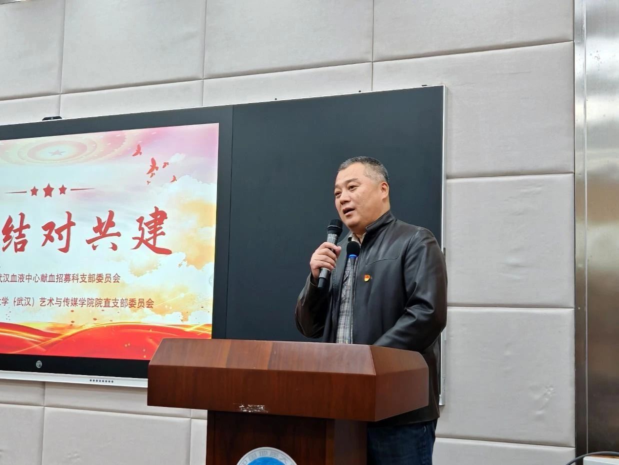 在艺媒楼1104报告厅开展了“热血担当,青春有我”无偿献血主题分享及支部共建活动。武汉血液中心党委委员、副主任杜思颖,武汉血液中心献血招募科王丹,武汉血液中心献血招募科党支部书记顾军,杏色