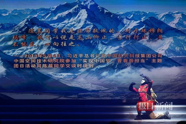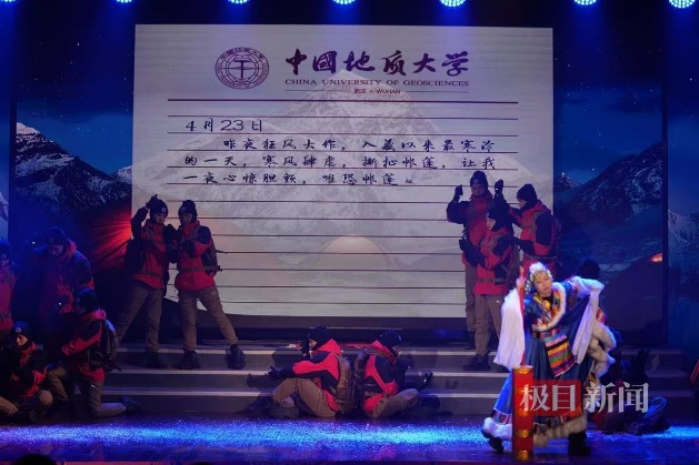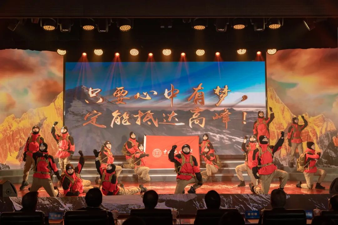 灯光渐亮,一幅壮丽的雪山画卷在舞台上徐徐展开。艺术与传媒学院的师生们以舞蹈《攀登》,生动再现了全国首位登顶珠峰的在校大学生陈晨的传奇经历。每一个灵活的舞步、每一个坚定的神情,都在诉说着人类挑战生命极限的勇气与决心,彰显着地大人征服自然之巅的壮志豪情。展现了地大师生迎难而上、向上攀登的精神。