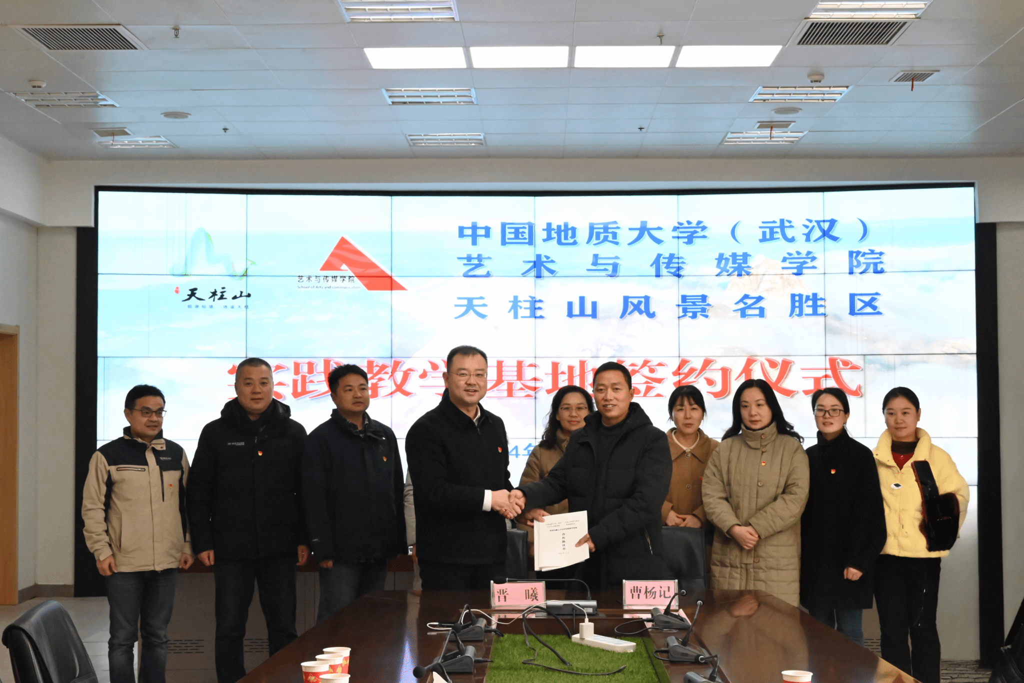 以高质量党建引领高质量发展和拓展特色实践育人基地是艺媒学院落实学校“提升增效”年度工作主题的重点任务。12月27日至28日,学院两个样板党支部——新闻传播系党支部和院直党支部赴安徽潜山、与天柱山地质公园管理中心党支部开展联学共建活动,并签订科普传播人才培养实践教学基地合作协议。