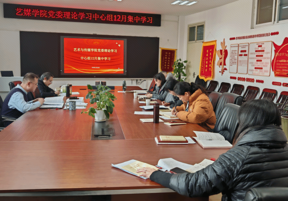 12月24日下午,艺术与传媒学院在1209会议室召开党委理论学习中心组集中学习会,专题学习《习近平文化思想学习纲要》和中央经济工作会议精神,传达学校有关文件精神。学院党委委员和纪委委员参加会议。党委书记晋曦主持会议。