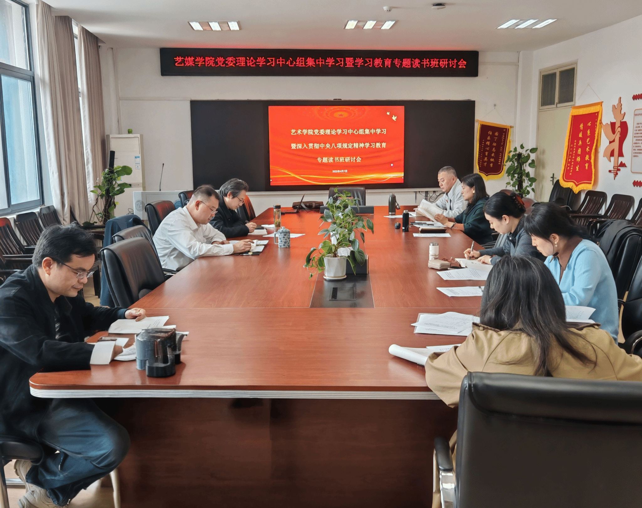 4月7日下午,艺术与传媒学院在1209会议室召开党委理论学习中心组集中学习暨深入贯彻中央八项规定精神学习教育专题读书班研讨会,专题学习《习近平关于加强党的作风建设论述摘编》第一章至第五章,并结合学习情况开展交流研讨。学院领导班子成员、党委委员、纪委委员和团委书记参加了会议。会议由党委书记晋曦主持。