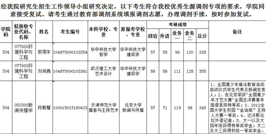 优秀生源调剂专项拟复试考生情况表(公示)