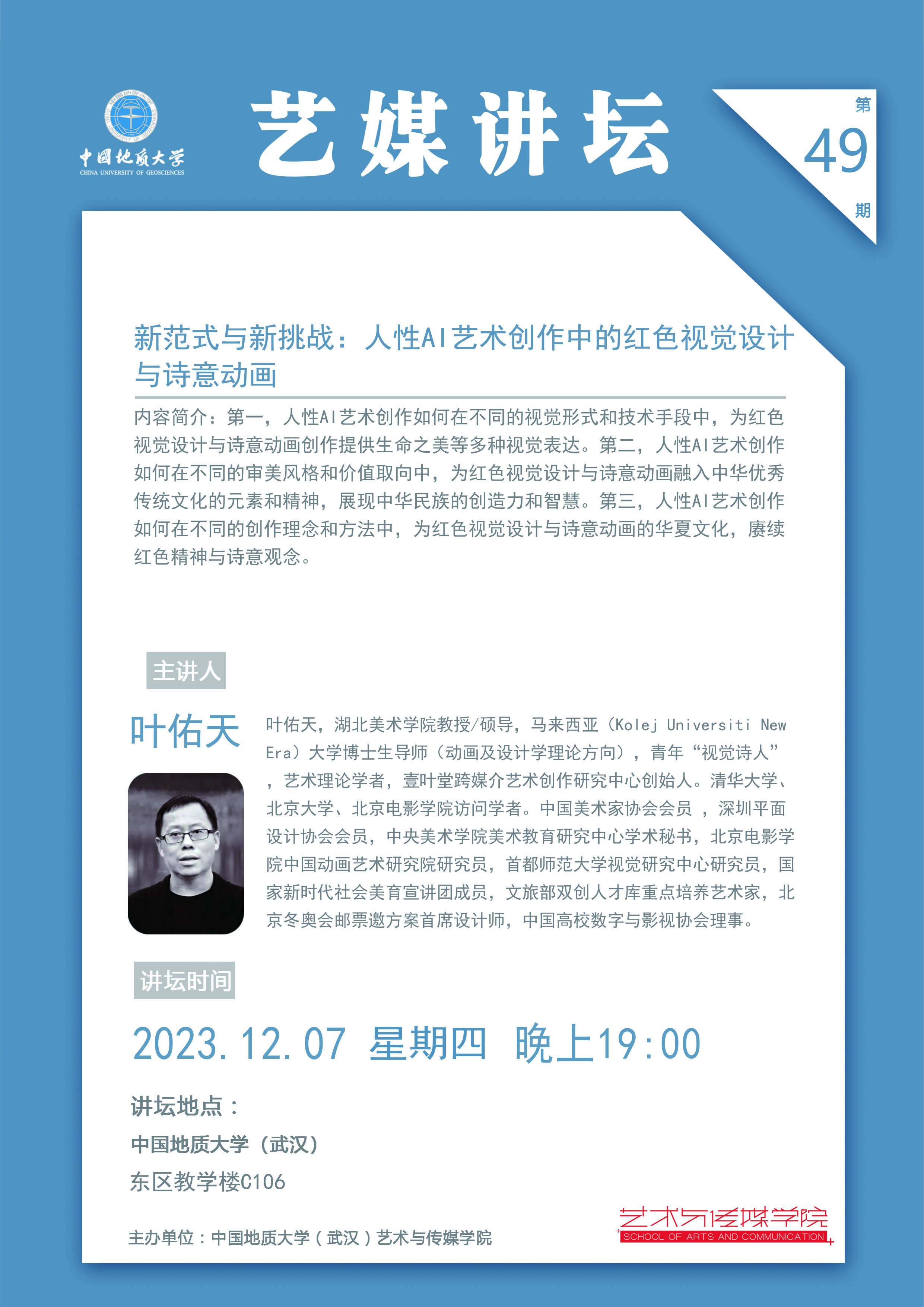 【2023年12月07日】学术讲座:湖北美术学院教授叶佑天老师讲座