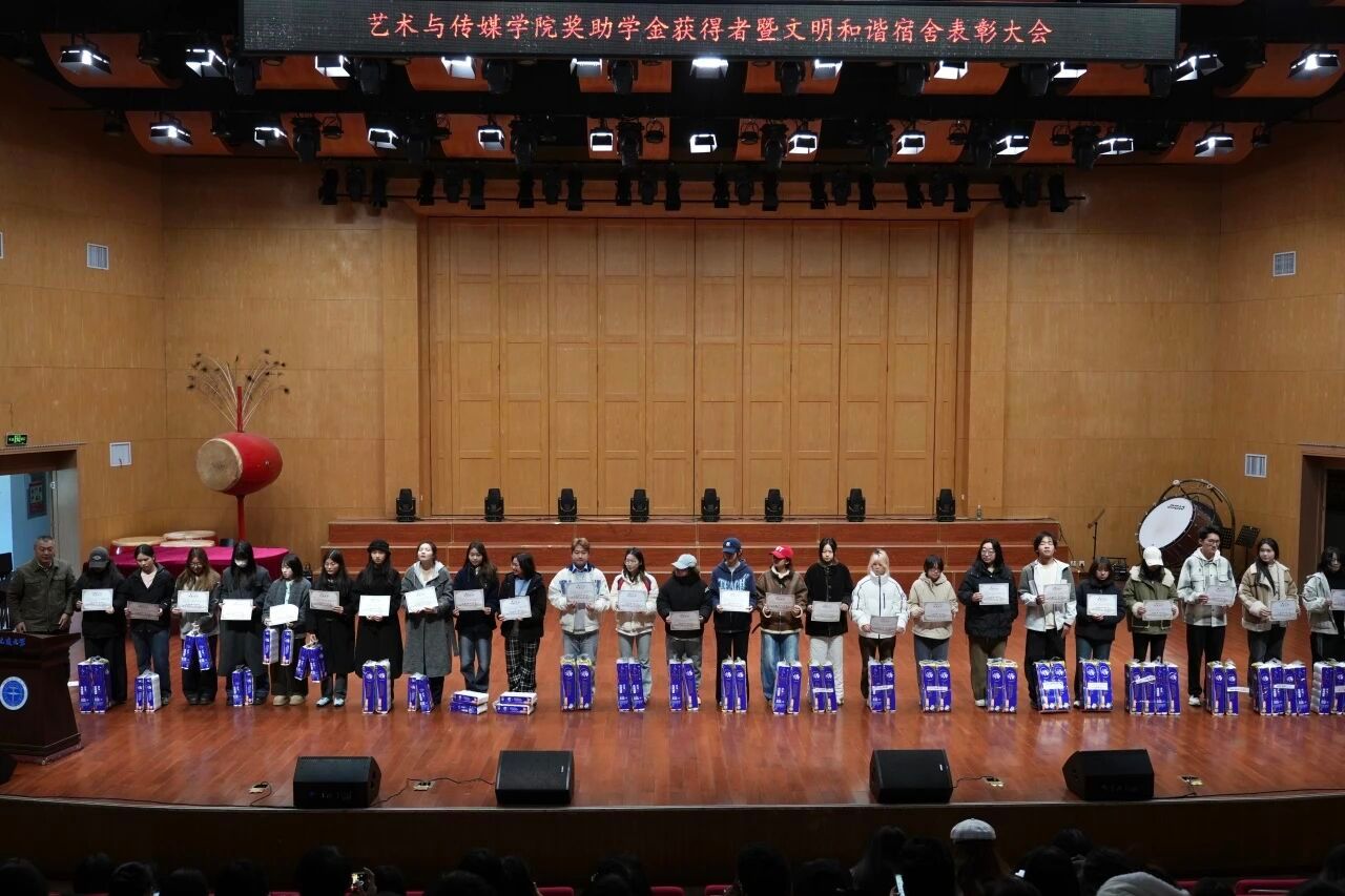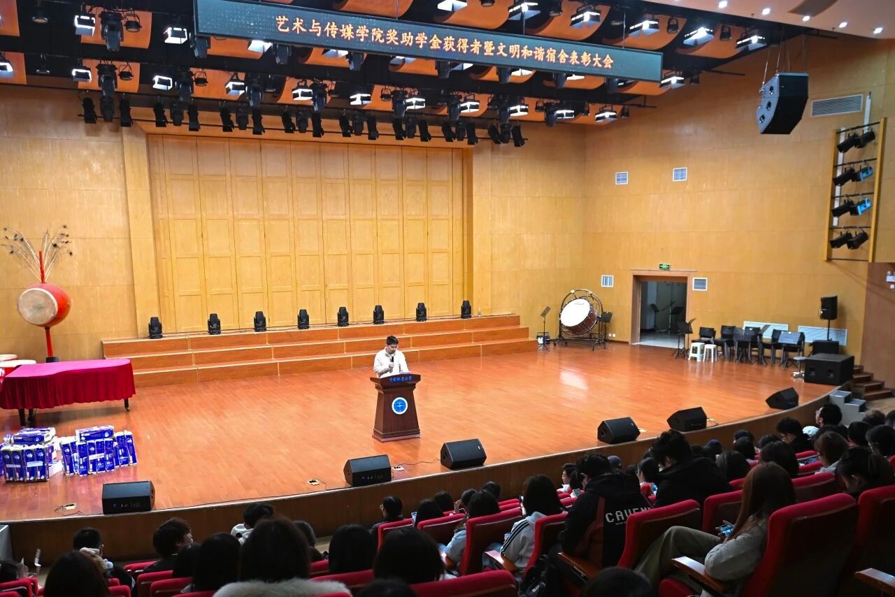 为表彰先进、树立榜样,进一步加强学生思想道德建设与宿舍文明管理,11月28 日中午12:30,艺术与传媒学院于北区音乐厅举行奖助学金获得者暨文明和谐宿舍表彰大会。学院党委副书记边建华,团委书记单湉艺,专职辅导员陈习良、曾戈晖,学工组兼职辅导员,2025 年全体本、研奖助学金获得者,2025 年 10 月“文明和谐优秀宿舍”的全体成员、各班级班长、生活委员、所有宿舍长共同参会,本次大会由辅导员陈习良主持。
