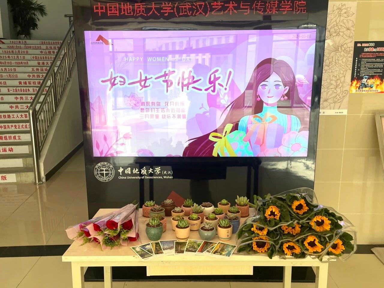 阳春三月,微风和煦。为庆祝第114个“三八”国际妇女节,2024年3月8日下午,艺术与传媒学院学生会和研究生会举办献花活动。用花束为全院女性师生同胞们送上最真挚的节日祝福,以花爱己,以花悦己,在忙碌的生活中进行简单的放松,在温暖美好的时光中回归心灵之美。