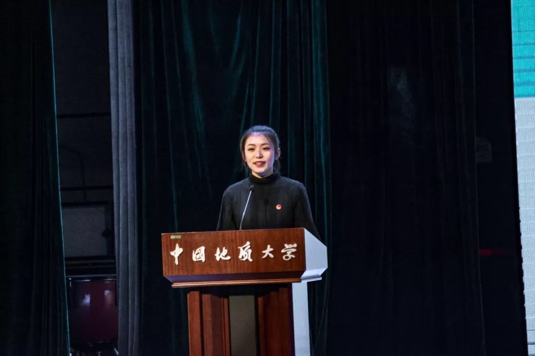 本科2017级161172班班长夏乙力同学作为年度先进班集体标兵获奖班级代表,以《仰望星空,逐梦前行》为题做大会主题发言,分享了杏色