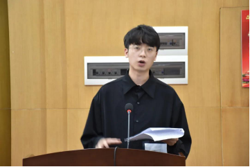 典礼第三项,由来自视觉与媒体设计系的教师代表狄丞发言。在热烈欢迎全体新生加入艺媒大家庭之后,他鞭辟入里地指出了未来艺术的前景,即由物质向精神转变,由实体向虚拟转变,由注重审美向注重体验转变。同时,他也指出时代的变革带来了学生选择的多样化,鼓励新生发展多重身份,进行学科融合,成为未来性人才,并教导新生关注政治生活,培养国际视野,将民族精神融入艺术创作中。