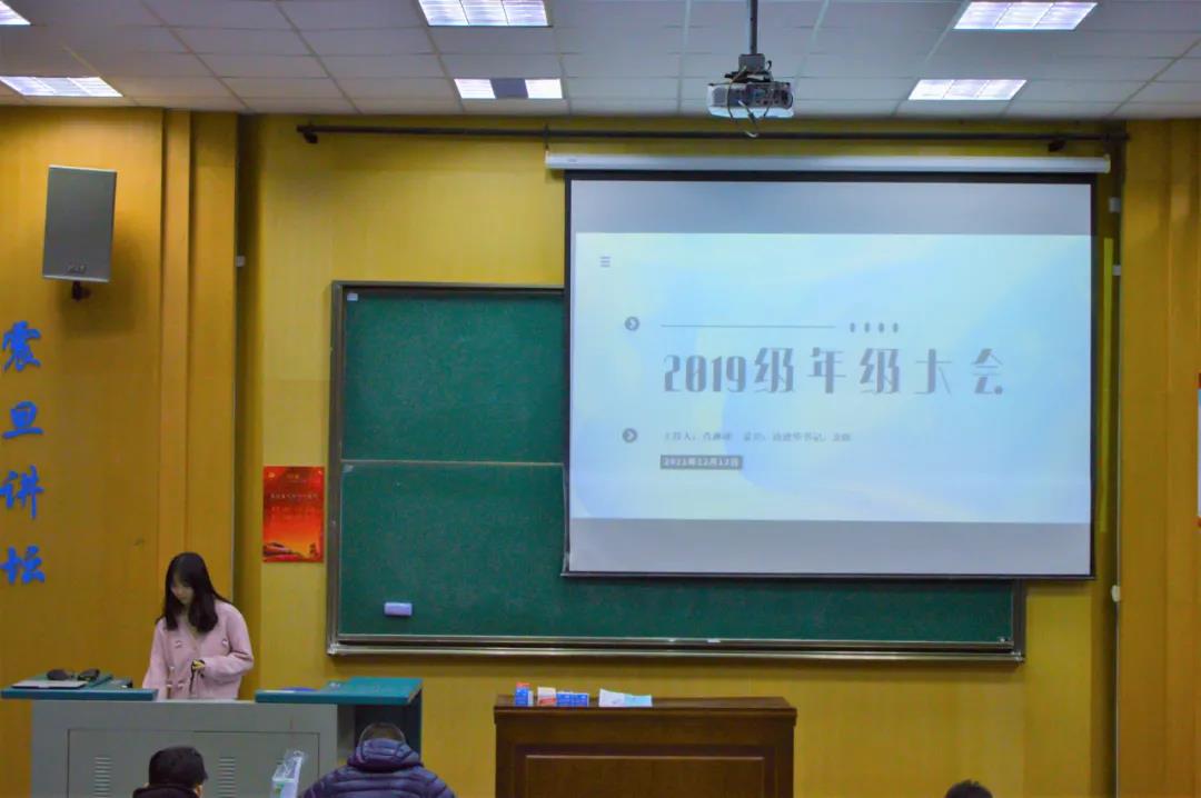 2019级年级大会于教三楼111准时召开,会议由2019级本科生兼职辅导员肖淋译主持,杏色