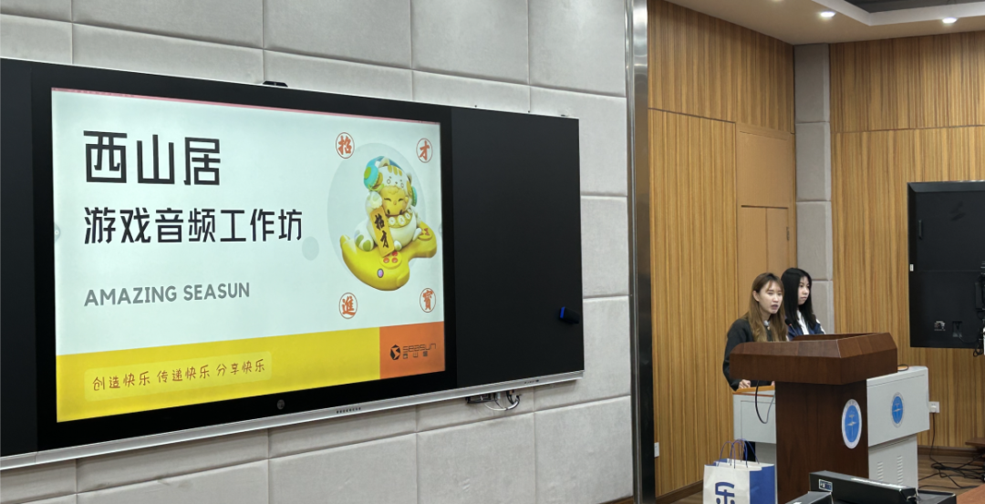 首先,西山居介绍公司基本情况,杏色,设计产品等。通过宣传片和音效等形式展示了公司的岗位就业方向。并且向同学们介绍了游戏开发的多个模块,主要分享了音频类的制作流程,从定位、功能性、环境分析等角度进行功能设计,应该如何根据人群受众制作音频。
