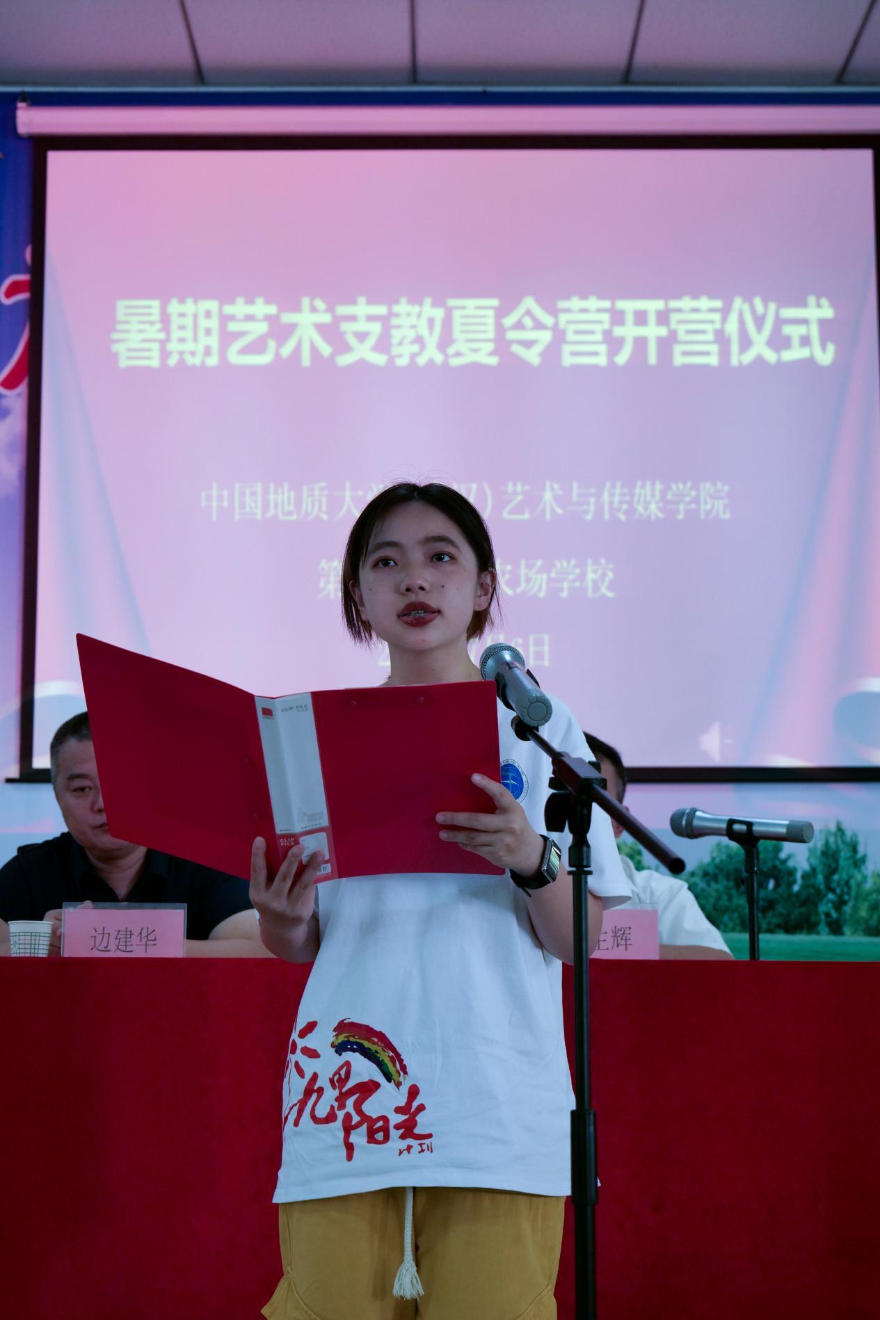 党委副书记边建华,红旗农场学校党支部书记、校长张守宪,副校长王尚涛、马艳,九里阳光艺术支教团全体成员以及红旗农场学校的师生代表参加本次开营仪式,活动由副校长王尚涛主持。