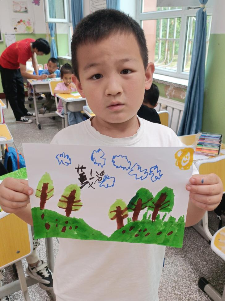跟小六老师画画很开心。——董文浩