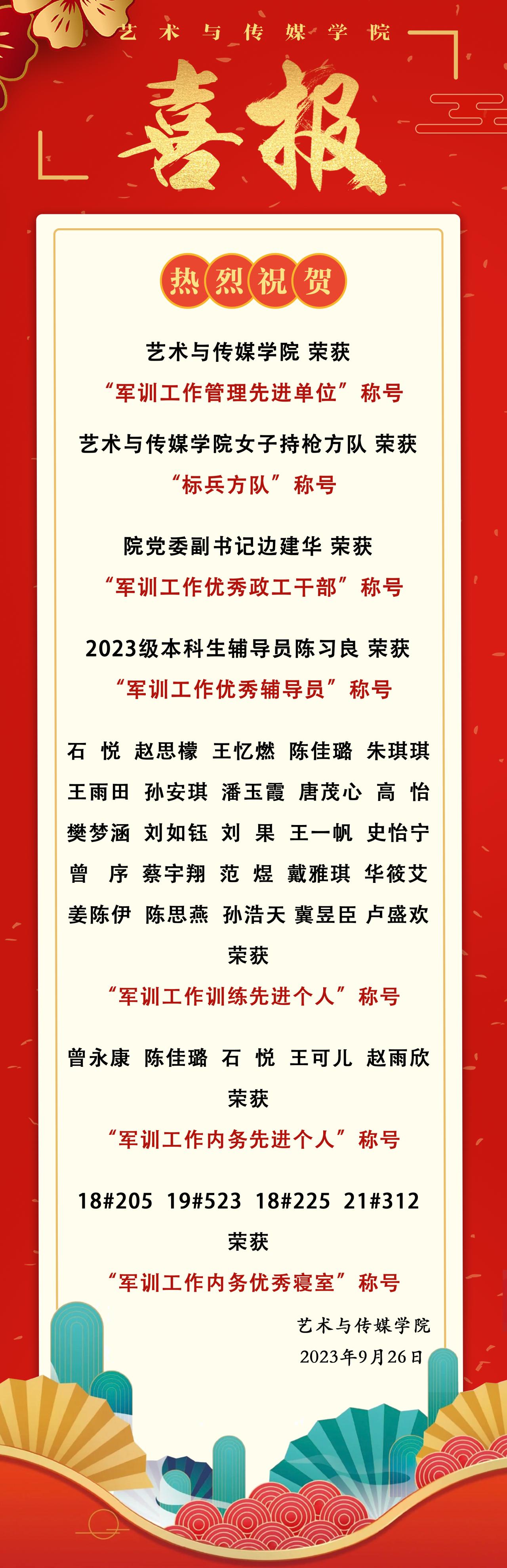 喜报 | 热烈祝贺我院在2023年军训中荣获多个称号