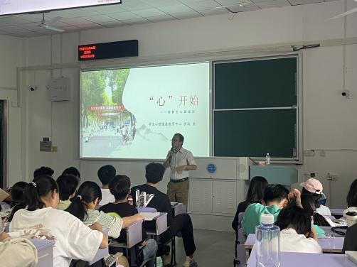 第五场讲座名为《“心”开始——谈新生心理适应》,由我校学生心理健康教育中心黄海老师主讲。黄老师用幽默诙谐的语言和真实生动的事例为同学们上了有趣而深刻的一课,新生需要从环境、角色、人际、学习四个方面去适应大学生活,并呼吁大家尽快调整心态,如遇到难以克服的问题积极向心理老师寻求帮助。