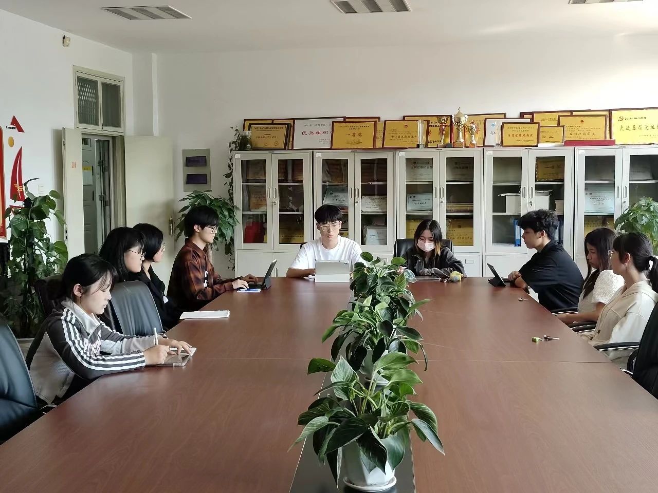 10月16日中午12:30,艺术与传媒学院学生会在艺媒楼 1209 会议室召开本学期第四次部长例会,学生会主席团及各部门部长参加了会议,学生会主席团成员余骥飞、青年志愿者协会理事邵梦华主持本次会议,学生会各部门部长参加会议。