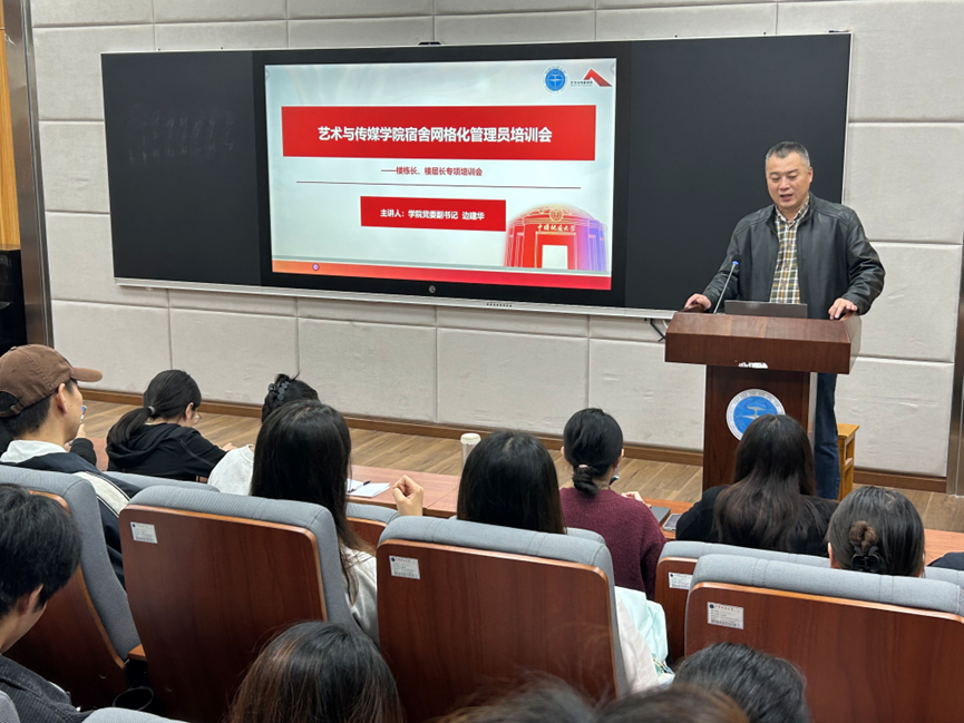 为深入贯彻落实教育部和《湖北省委教育工委、省教育厅关于推进高校“一站式”学生社区建设工作的指导意见》及《中国地质大学(武汉)“一站式”学生社区建设工作方案》,全面落实立德树人任务,建立健全学生公寓管理工作机制,维护新形势下校园安全稳定,艺术与传媒学院于10月25日中午13点在学院楼1104会议室召开本研宿舍网格化管理培训会。会议由学院党委副书记边建华主持,学院全体楼栋长、楼层长参加了会议。