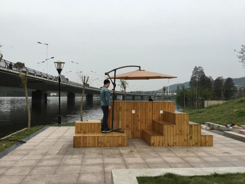 “小方”占地3.5×4.5米,高1.4米,重1.5吨,主要分为三大部分:防腐木装置主体,太阳能供电系统,感应互动系统。三大系统为学生提供了包括多人户外会议、社团小型活动、表白圣地、班级毕业合影、太阳能手机充电、触摸式感应灯光等多项功能。
