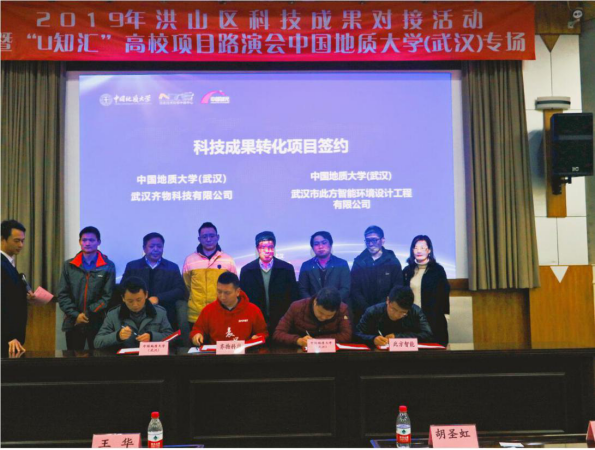 我院代棋帆博士带领的此方团队积极参与其中,全力共同打造中部地区开发高地,争创高水平科技创新中心。在2019年洪山区科技成果对接活动中国地质大学(武汉)专场中,在王华副校长出席见证下,与我校签约了相关科技成果转化项目。截止目前与学校联合开发项目已有五次,并获得11项国家专利,6项软件著作权,现已是武汉市科技“小巨人”企业,湖北省科技型中小企业。此方作为从事城市公共空间交互体验全案设计方面的公司,在设计类企业中少有的获得了国家高新技术企业的授牌及40万政府奖励。
