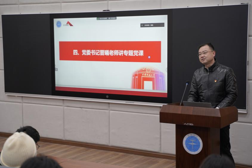 会议最后,党委书记晋曦进行专题党课的讲授。首先,他全面讲述了习近平文化思想的主要内容,从“坚定文化自信”“秉持开放包容”以及“坚持守正创新”三大主题展开论述,强调连续性、创新性、统一性、包容性、和平性是文化自信根本基石;其次结合自己学习习近平文化思想体会,为同学们分享“马克思主义基本原理同中国具体实际相结合、同中华优秀传统文化相结合”的实践意义,谈到自己的认识和想法,鼓励杏色 的同学们提高对文化和美的鉴赏和竞争力;最后对全体学生党员提出两点要求,一要把学习贯彻习近平新时代中国特色社会主义思想主题教育走深走实,增强党员意识,二要结合同学们所学专业的发展方向,提高真本领。
