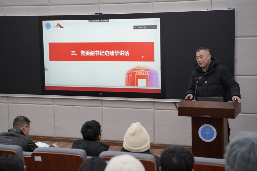 宣誓完毕,党委副书记边建华讲话,对全体党员提出以下五点要求:一是提高党员意识,认真学习党章中关于党员责任和义务的内容,发挥党员的表率作用,过好意识关;二是加强纪律意识,严格落实请假销假制度,过好纪律关;三是加强理论学习,按时提交思想汇报,积极参加党员教育部开展的理论学习会议,过好理论关;四是服从学院党建工作安排,积极承担相应的党务工作,每名党员必须完成党组织指派的任务,过好行动关;五是促进自身专业与党建工作相融合,发挥专业特长,解决好党建和学业“两张皮”的问题,过好本领关。